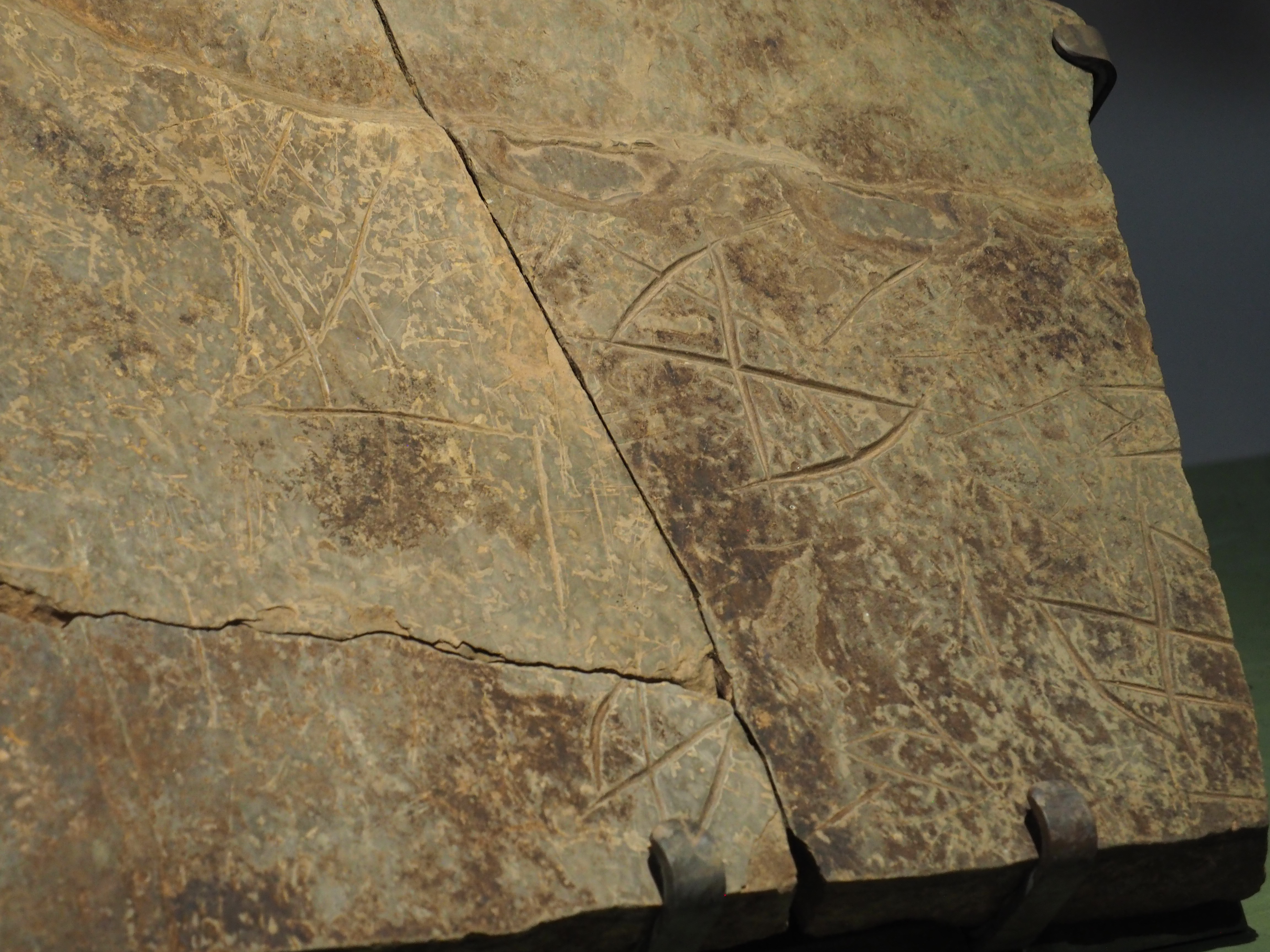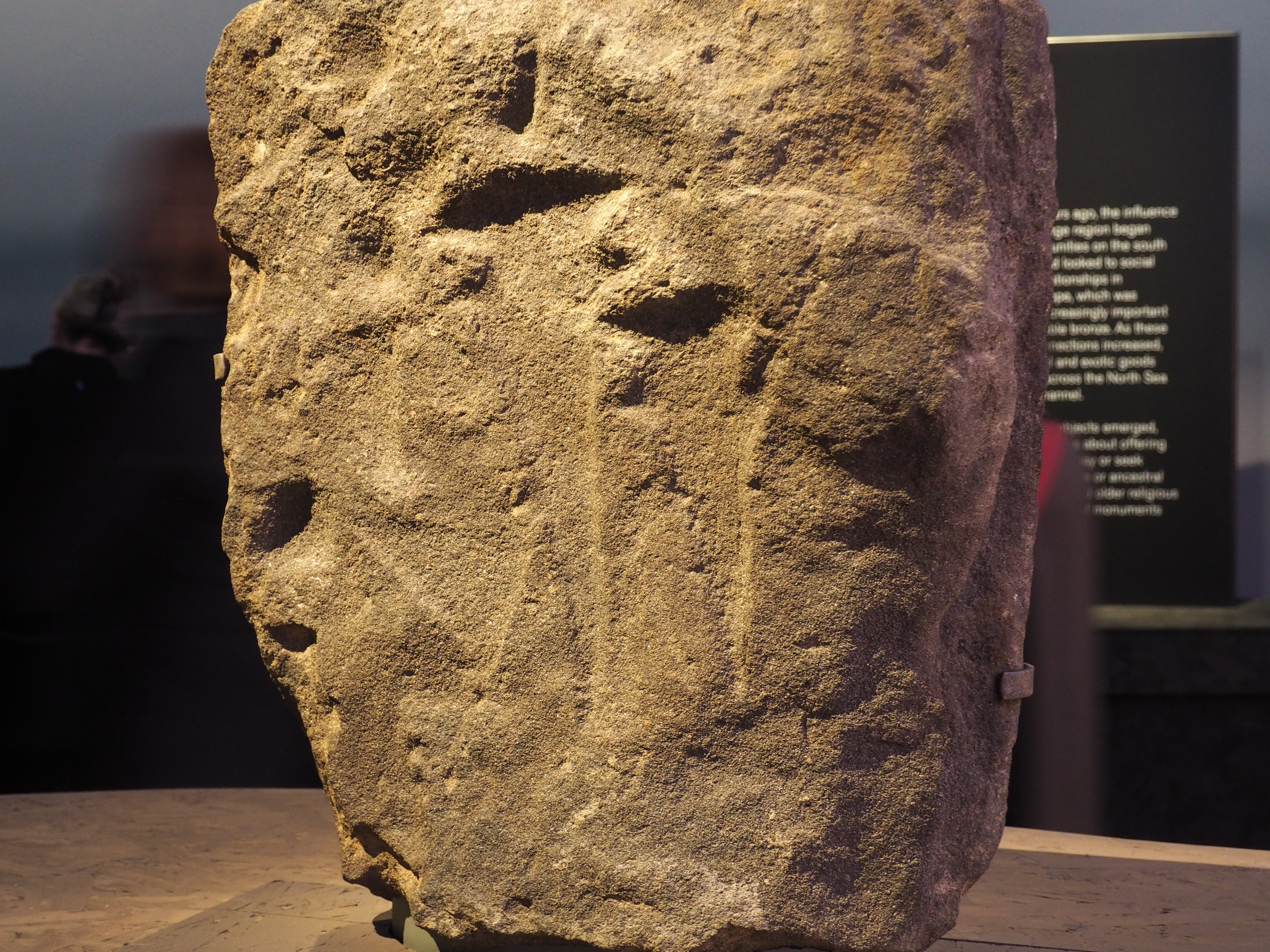 Back on the continent, in Europe, this was the time of the Valcamonica stone (one of the first pieces to greet you in the exhibition); added to by generations in a place of worship, it celebrated the sun, gatherings of people, wild animals and farming.  This was new pictorial art.