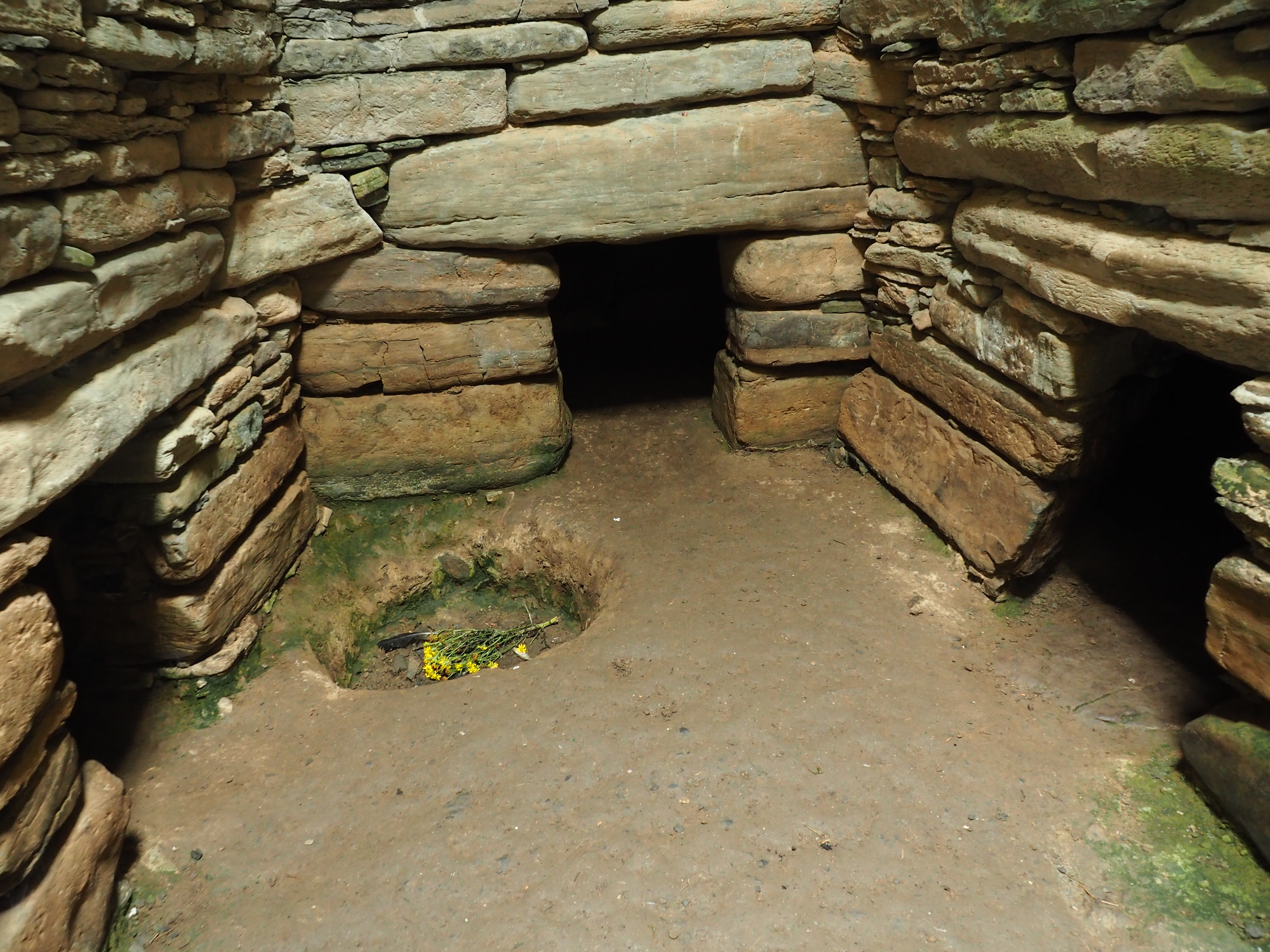 Pottery (heavy and fragile) became possible in the new settled communities. Their new ownership of lands and ceremonial ancestral lands were expressed in great earthen monuments (causewayed enclosures and cursus) which dominated the landscape of Salisbury Plain and elsewhere.  Great tombs called Long Barrows and monumental chambered tombs held their collective ancestors (at least of certain families) but few grave goods.   Orkney’s ‘stalled cairns’ first echoed the rectangular homes of the living and then, as houses became circular, rounded tombs appeared.