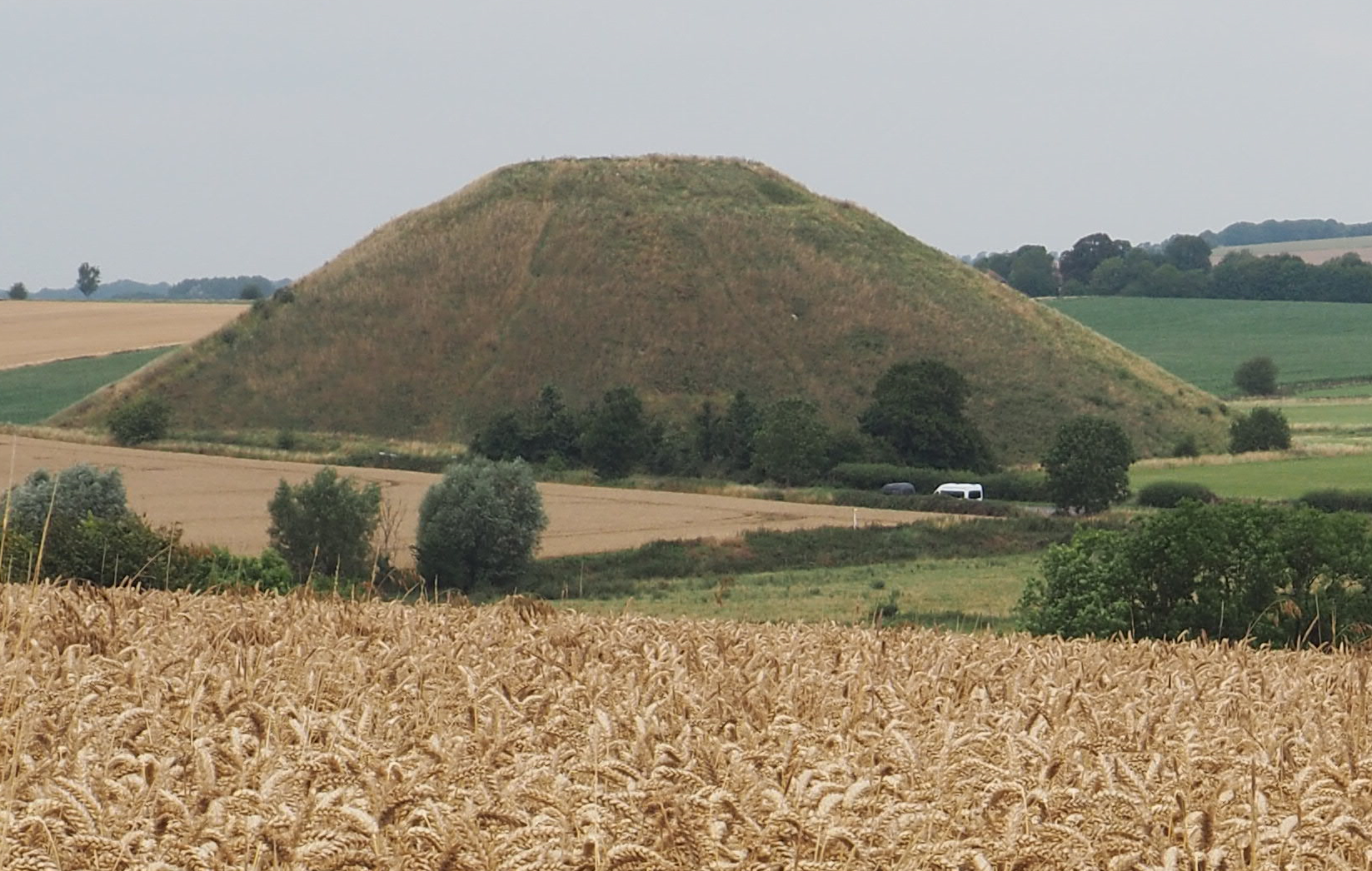 Meanwhile, the Copper Age, lasting a couple of hundred years, heralded the Early Bronze Age (c.2,500-1,600 BC).   The innovative Beaker People  arrived from c.2,475 BC with new ways and soon a central circle of Bluestones was erected within the Sarsens trilithon curves and monumental and mysterious Silbury Hill was built with vast manpower.